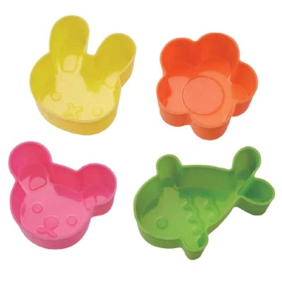 This set includes three animal-shaped silicone cups and one flower cup, in four different colours.