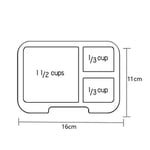 Munchi Snack Munchbox includes one outer box (3 compartment design) and two interchangeable trays (2 and 3 compartments).